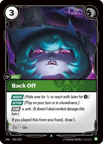 El precio de referencia de Back Off no está disponible en TCGplayer. En CardIndex aún no hay vendedores en Chile para esta carta. Los precios pueden variar según la condición de la carta, idioma o disponibilidad del vendedor.